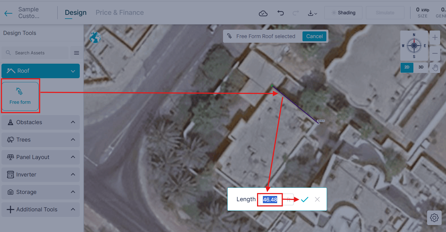 To align panels to the edge while designing a solar system: Select the roof area where the panels have been placed. Again click on / select the specific side or edge where you want the panels to be aligned. When you select the desired edge , you will ...